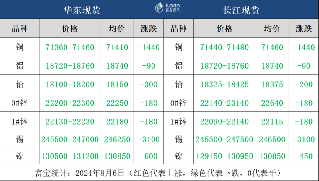 今日铜价大幅下挫。截止日内收盘沪铜主力2409合约收至70850(-2210,-3.02%)。美国经济衰退风险延续,全球金融市场迎来抛售潮,国内人民币升值,多种因素共振使得铜价承压明显。基本面,昨日LME铜库存仍然保持累库趋势,沪铜库存水平保持高位,铜价下行压力加重。现货市场,由于铜价再度大幅走跌,下游谨慎观望情绪加剧,贴水加深,但成交未有明显提升。结合盘面来看,宏观悲观预期仍在持续发酵,夜盘检测支撑位70000元,操作上暂且观望,等待企稳。